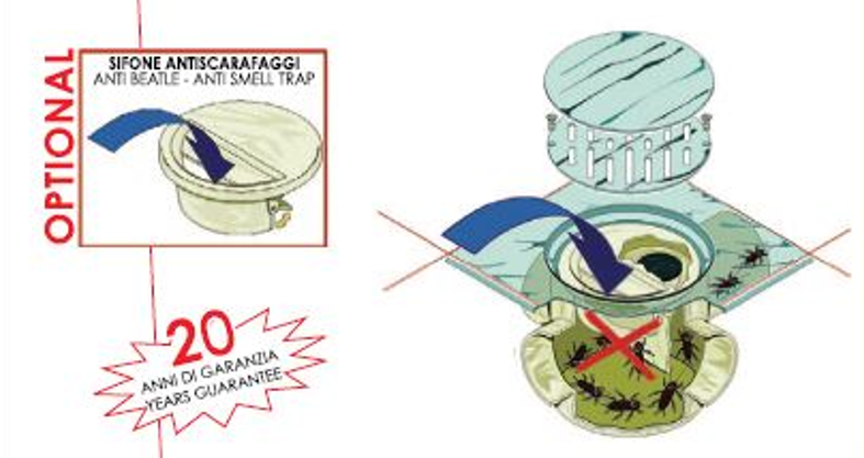 Patented by Miro, preventing cockroaches from coming from drainage on the floor thanks to its non-return function.