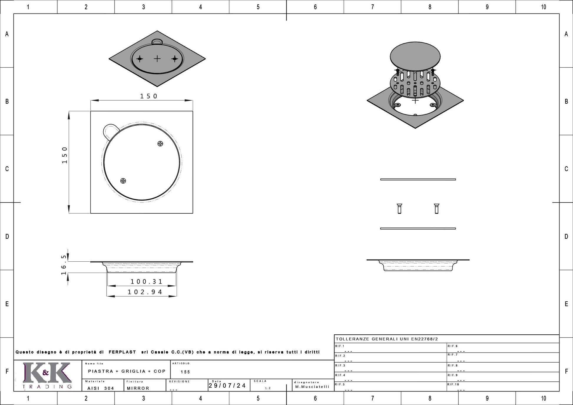 "Stainless steel floor drain AISI 304, with fixed cover, and bent edges.
