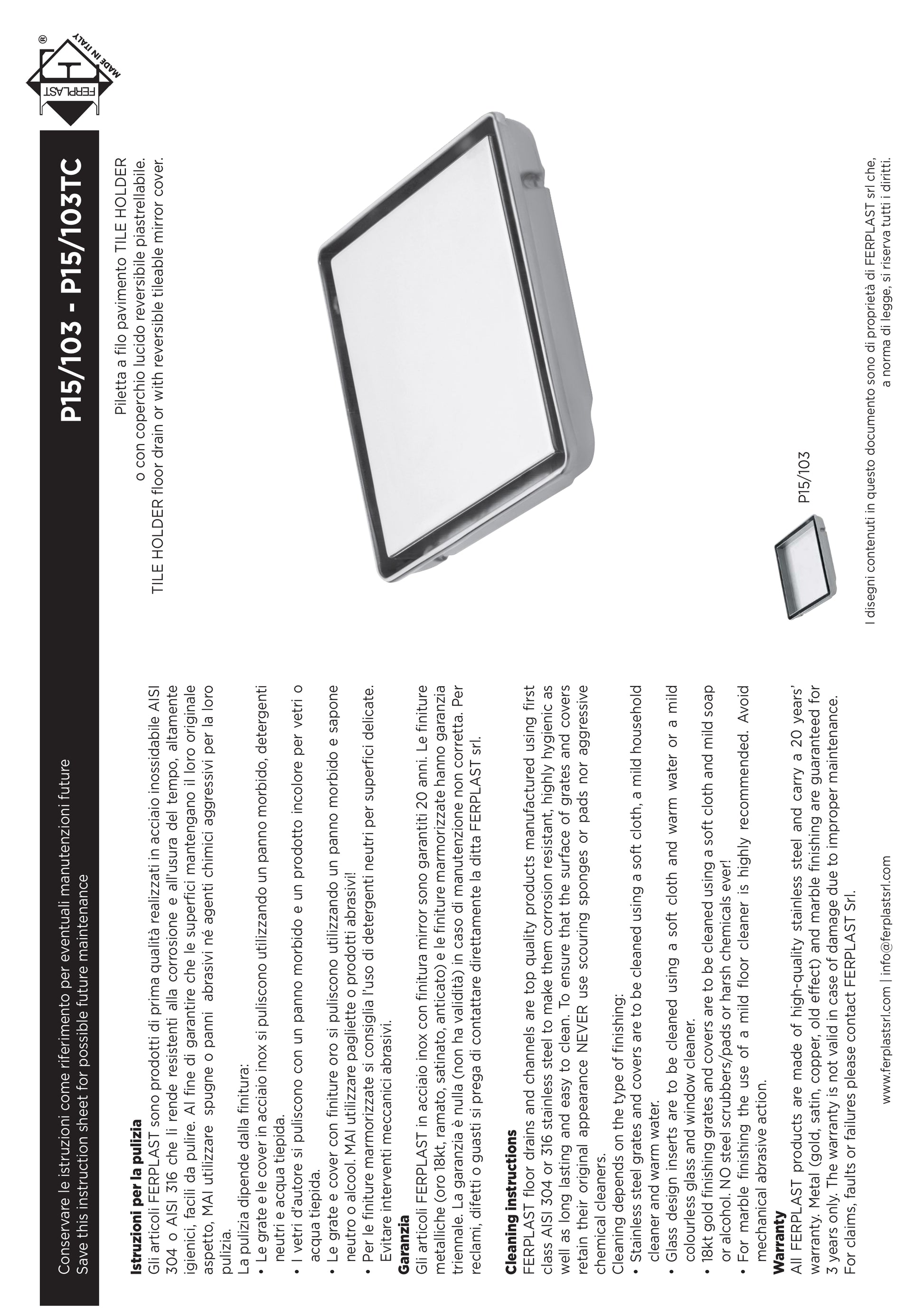 K&K Tile Holder floor drain is made of stainless steel AISI 304 with a reversible, tileable mirror cover.