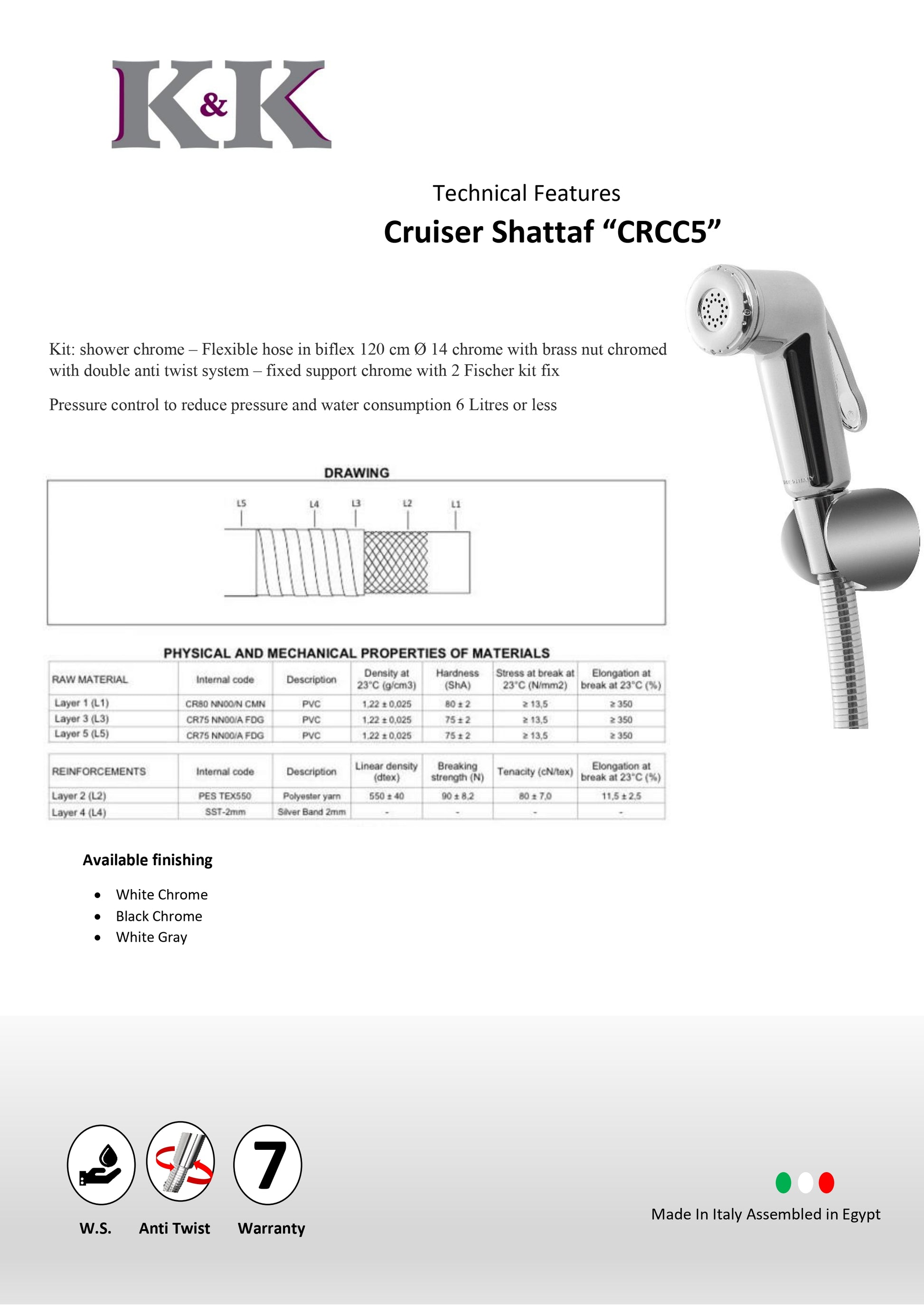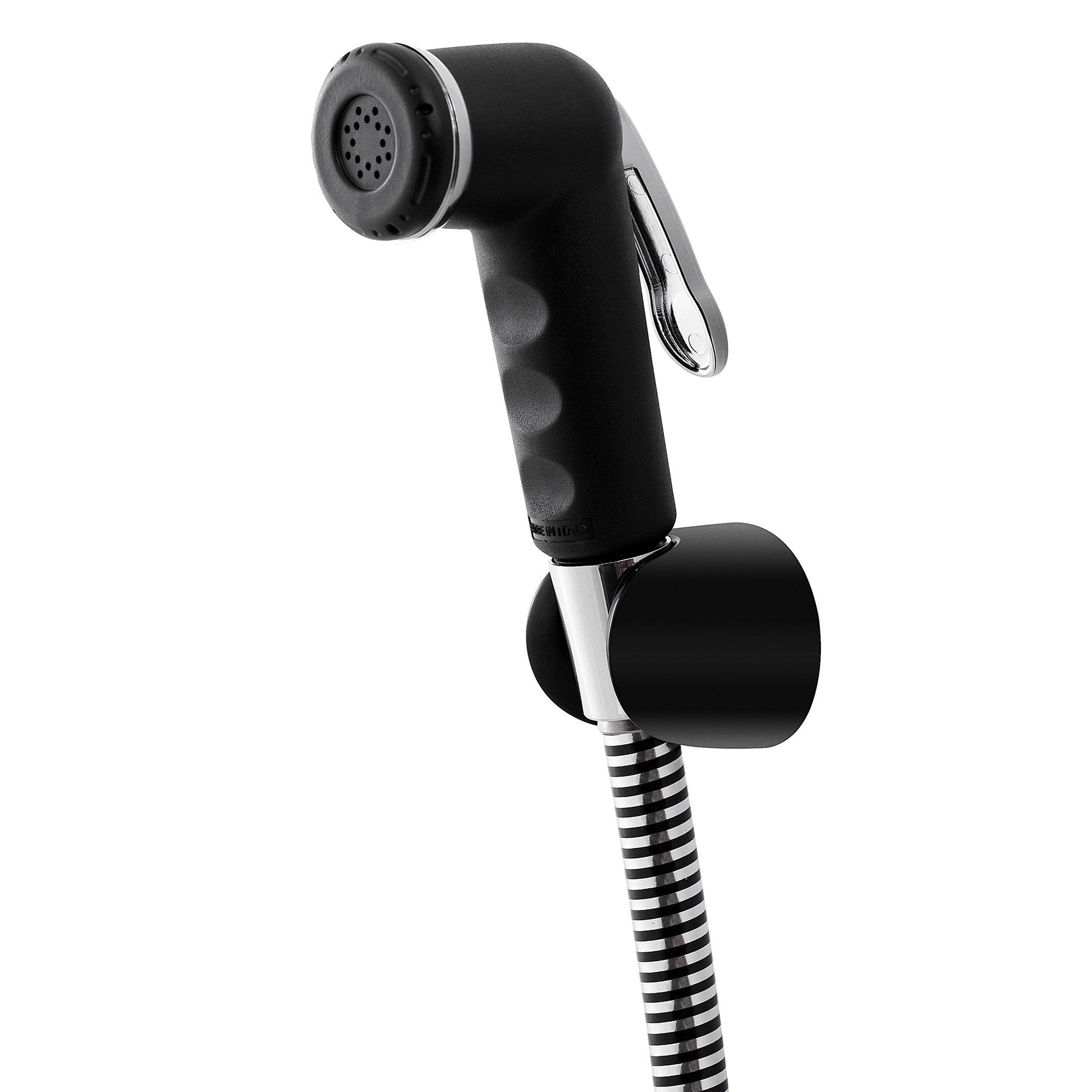 Kit: shut off black,1 ring and level chromed - Flexible hose in biflex 120 cm 0 14 black/chrome with brass nut chromed anti-twist system