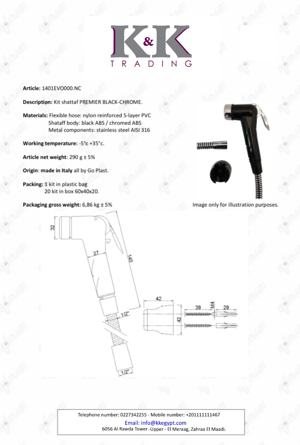 Kit: Black Shattaf Showerhead with a new full-flow lock system-all the metallic components are made of AISI 316 stainless steel
