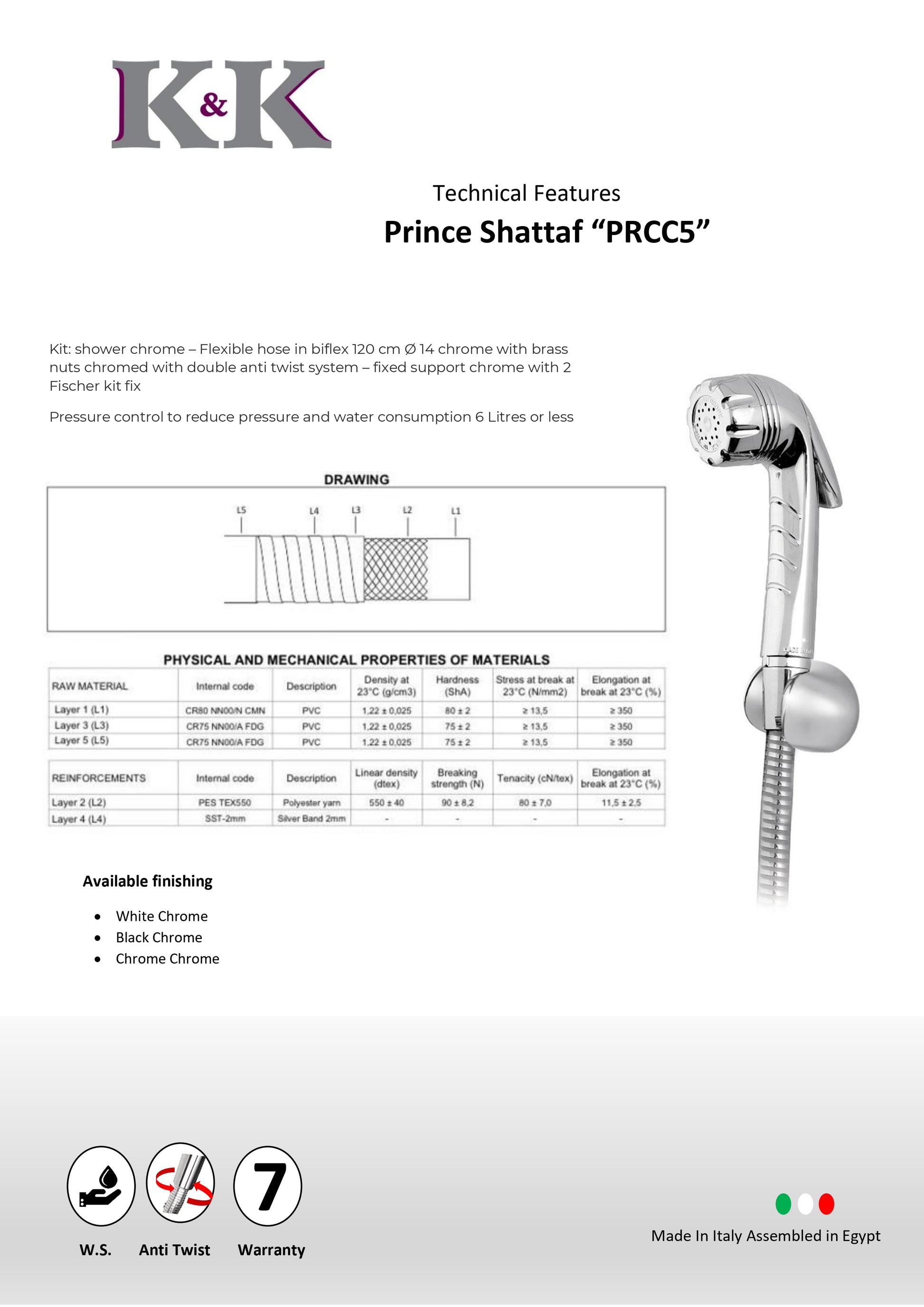 Kit: shut off white with 1 ring chrome - Flexible hose in biflex 120 cm 0 14 chrome with brass nut chromed anti twist system